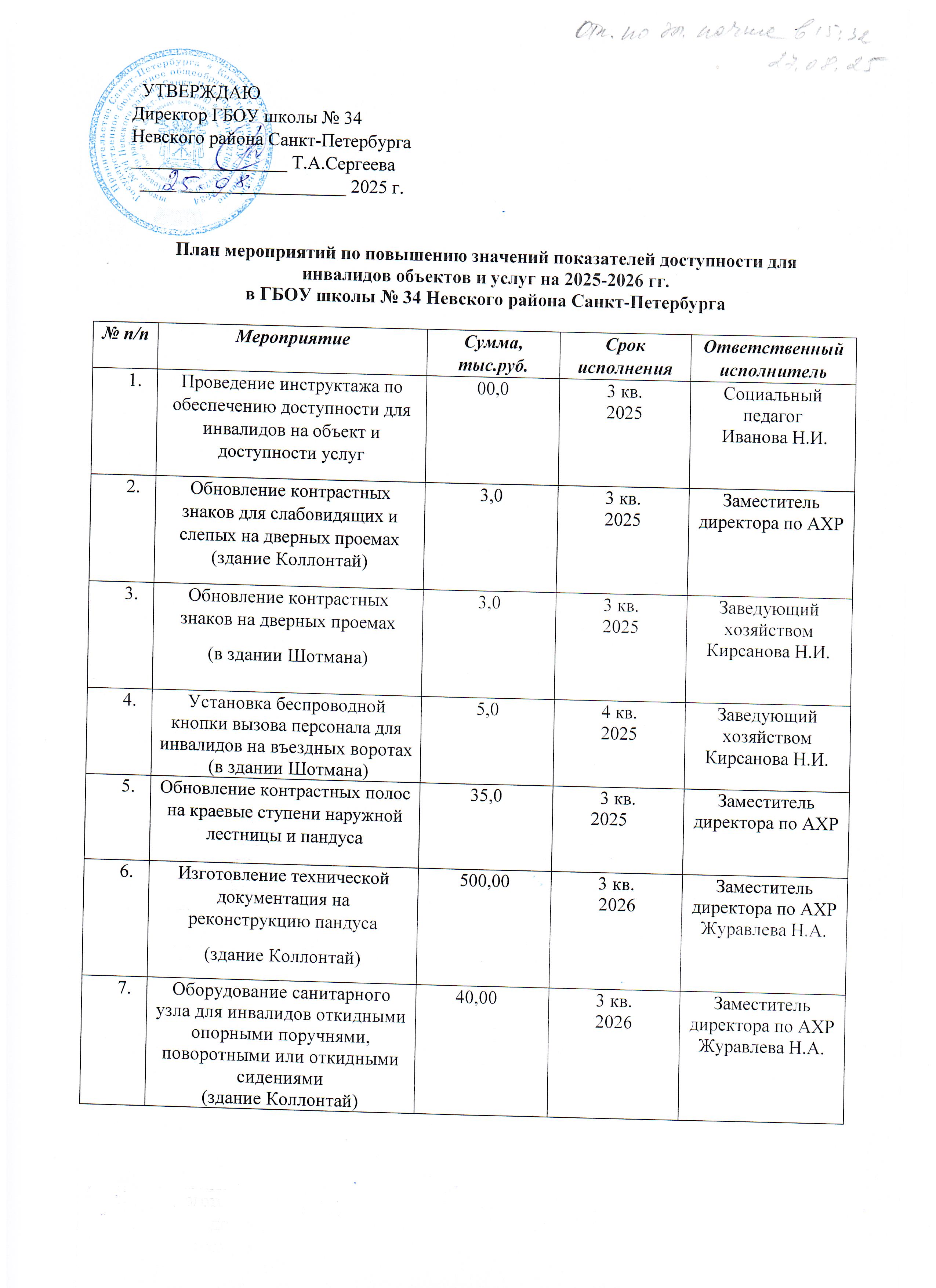 ИНФОРМАЦИЯ ОБ ОБЕСПЕЧЕНИИ БЕСПРЕПЯТСТВЕННОГО ДОСТУПА В ЗДАНИЕ ГБОУ ШКОЛЫ №34 НЕВСКОГО РАЙОНА САНКТ-ПЕТЕРБУРГА