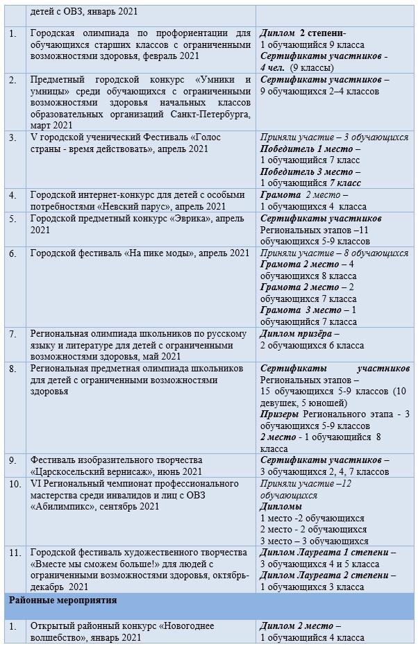 Подведены итоги ежегодного регионального этапа Всероссийского конкурса «Лучшая инклюзивная школа», организованного Комитетом по образованию и Санкт-Петербургским региональным отделением Всероссийской общественной организации содействия развитию профессиональной сферы дошкольного образования «Воспитатели России». Приятно отметить, что во всех трех номинациях, образовательные организации Невского района были отмечены как победители и призеры. В номинации «Лучший ресурсный центр по инклюзивному образованию» 1 место заняло Государственное бюджетное общеобразовательное учреждение школа № 34 Невского района Санкт-Петербурга. Поздравляем победителей и призеров регионального конкурса «Лучшая инклюзивная школа России» в 2020 году!
